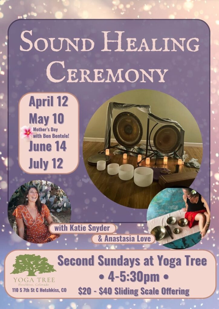 Join Katie Snyder and DJ Soul Candy for Sound Healing Ceremonies, second Sundays, April – July.